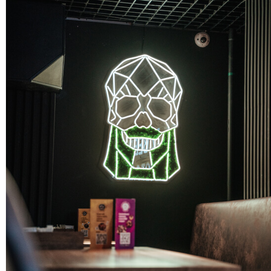 Плюсы: стеклянный неон создает эффект винтажности и отлично вписывается в любой интерьер.
