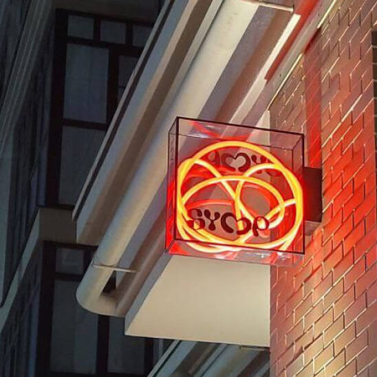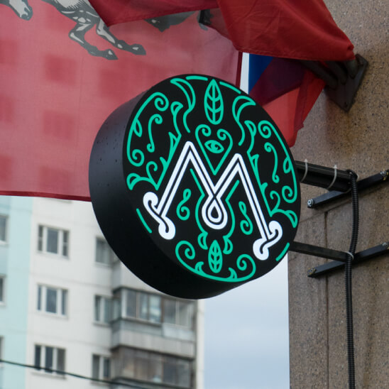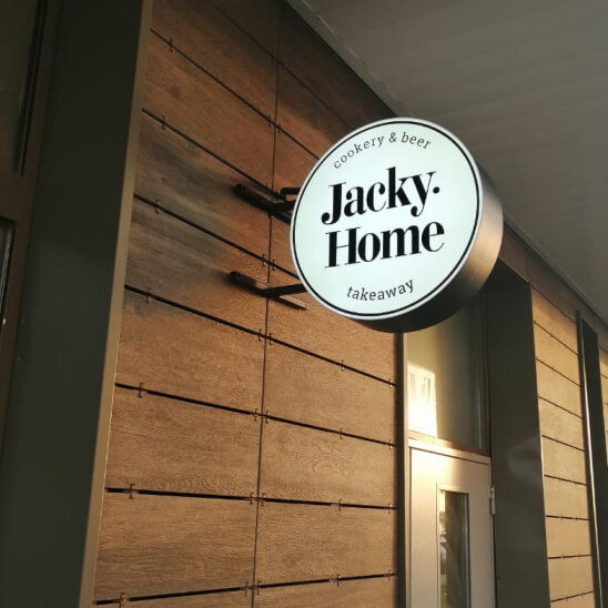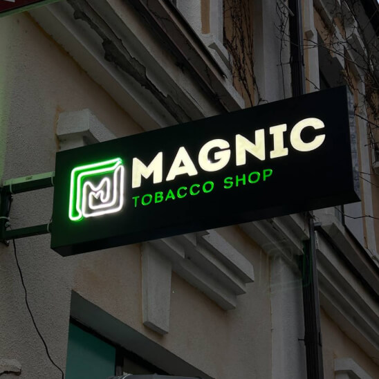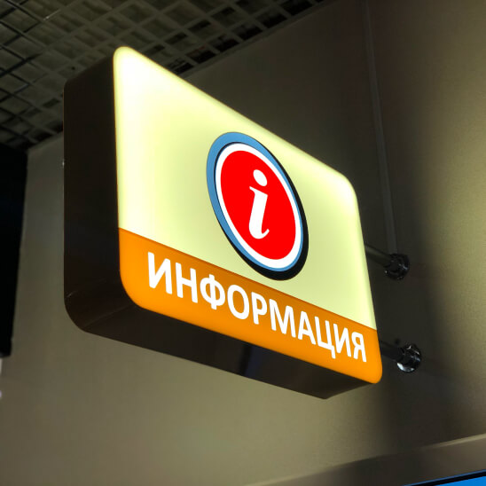 Изготавливается из специального профиля (борта) и лицевой части. Профиль бывает алюминиевым или пластиковым. Есть двусторонняя подсветка. Привлекает внимание посетителей и придает зданию свежий вид.