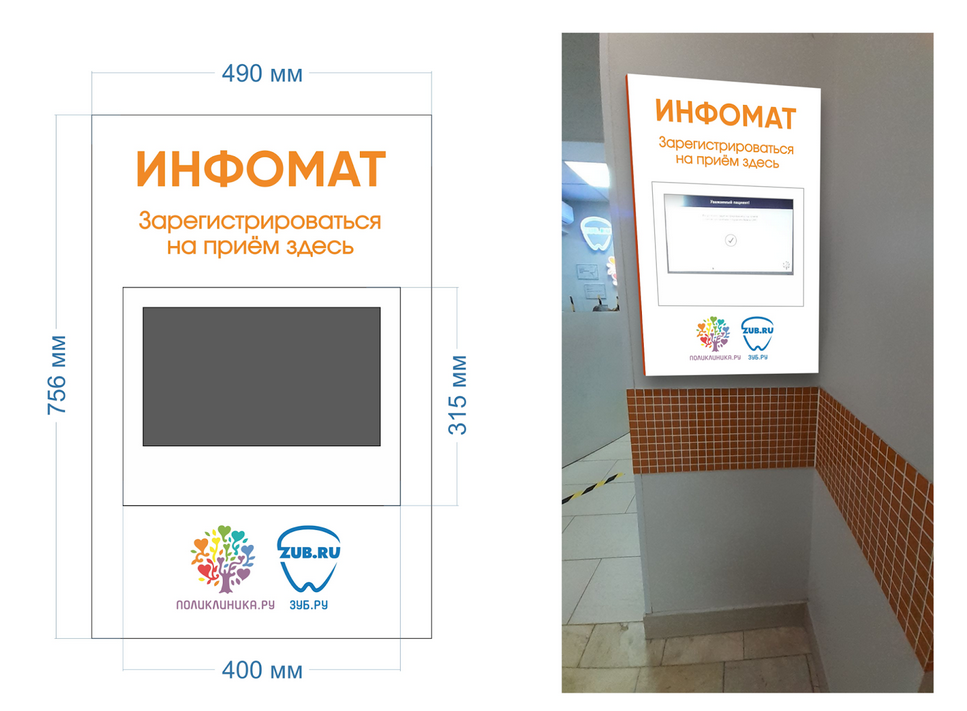 Несколько лет назад к нам обратилась одна сетевая поликлиника для изготовления двух вывесок на фасады здания. После сдачи заказа мы предложили взяться за организацию работ по внутренним информационными конструкциям, навигации и даже помогли придумать оформление для информационных диджитал-табло: изготовили и забрендировали.
