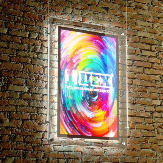 Прозрачные световые панели с ажурным свечением по периметру. Часто используются в компаниях премиального сегмента. При небольшой толщине панели сам носитель практически незаметен, и внимание акцентируется на изображении. Картинка на панели «кристалл» как будто сама является источником свечения - свет идеально рассеивается по всей плоскости. Такая конструкция очень прочная и долговечная.